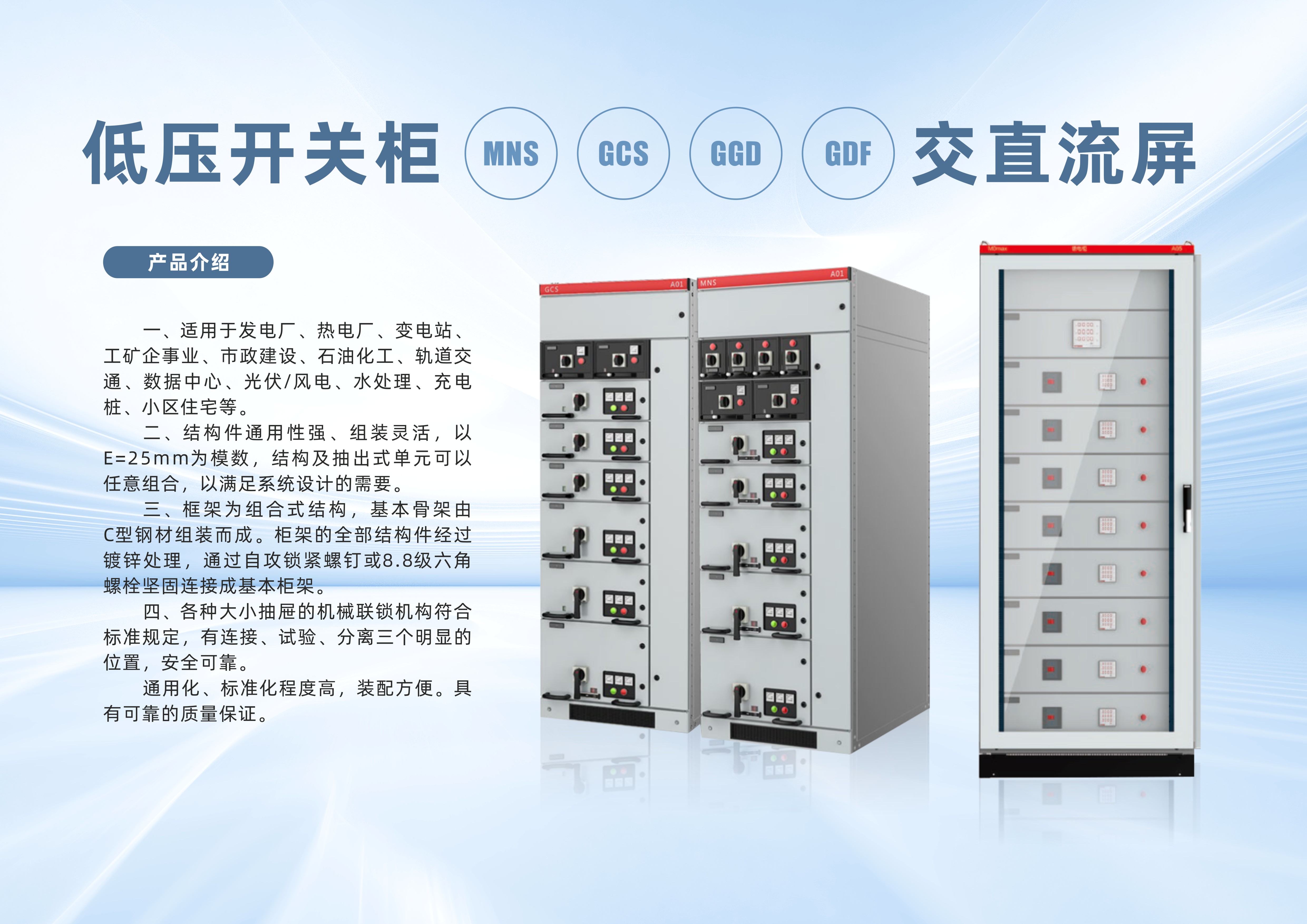 低壓開關(guān)柜MNS、GCS、GGD、GDF交直流屏